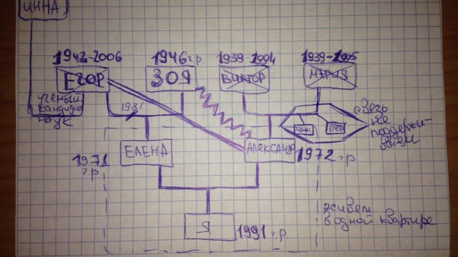 Мой дедушка Егор (1942-2006) и бабушка Зоя (1946 г.р.) относились к военному поколению, но в силу возраста войну и все что с ней было связано, запомнили плохо. Тема войны в нашей семье практически не поднималась. Дедушка преподавал в институте, был кандидатом наук, являлся заведующим кафедрой и несколько лет до выхода на пенсию, после которой, к слову, продолжал преподавать, был проректором. Его я запомнила человеком чутким и очень добрым. Институт и работа для него были всем, на семью времени у него не оставалось. В браке с бабушкой у него родилась моя мама, больше детей у них не было. В 1981 г. он неожиданно для всех ушел из семьи и женился повторно, но связь с дочерью и бывшей женой поддерживал. Бабушка больше замуж не вышла. Мама познакомилась с отцом «на картошке» от института, он, по ее словам, единственный из всех ребят отгадал одну из загадок на вечерних посиделках у костра.